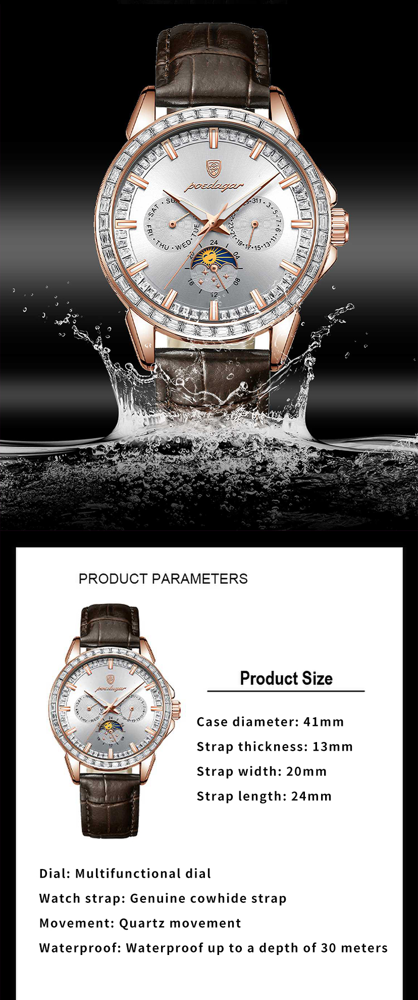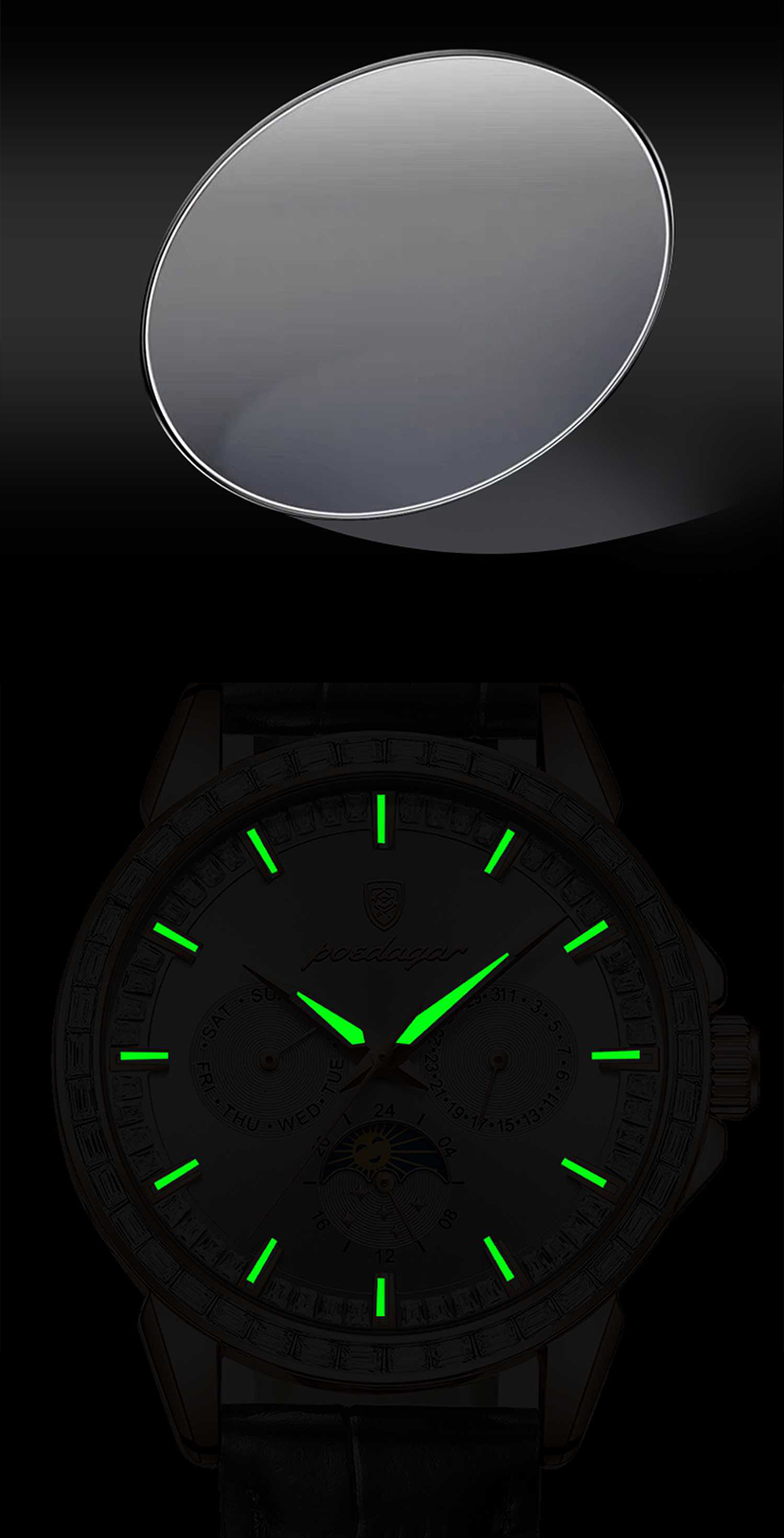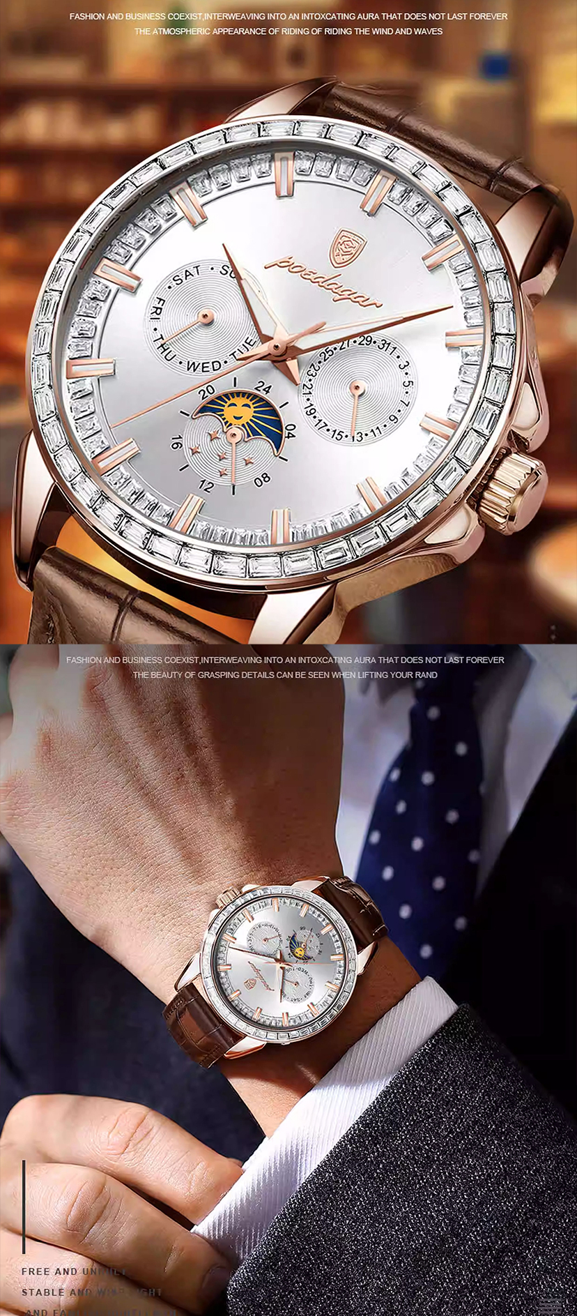 Men's multifunctional trendy calendar watch. It is waterproof, suitable for business occasions, has a luminous function, and is a men's quartz wristwatch